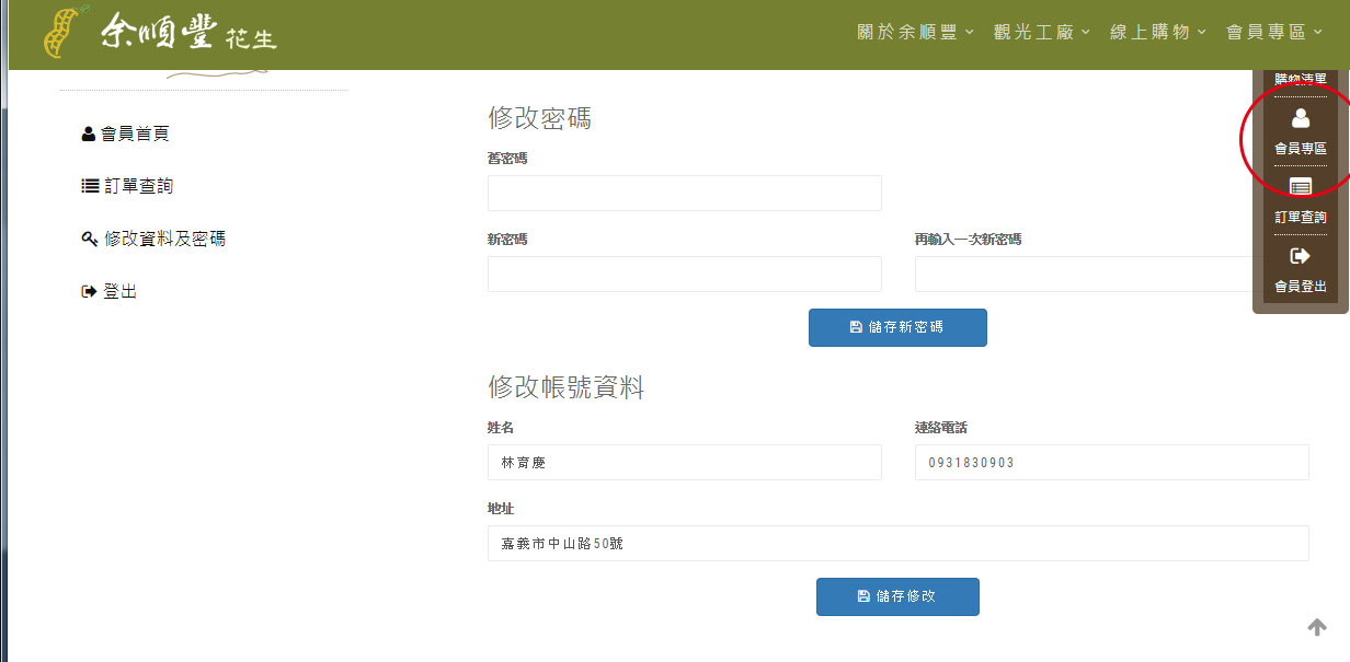 請先登入會員,再前往會員專區>修改資料及密碼。